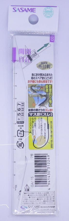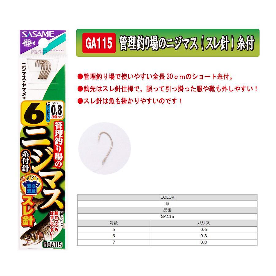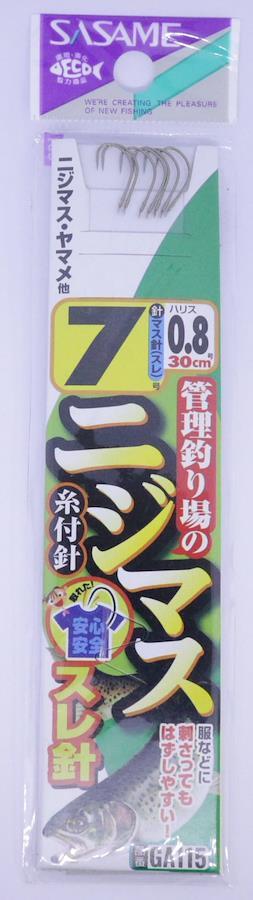 管理釣り場で使いやすい全長30㎝のショート糸付。 鈎先はスレ針仕様で、誤って引っ掛かった服や靴も外しやすい!スレ針は魚も掛かりやすいのです!