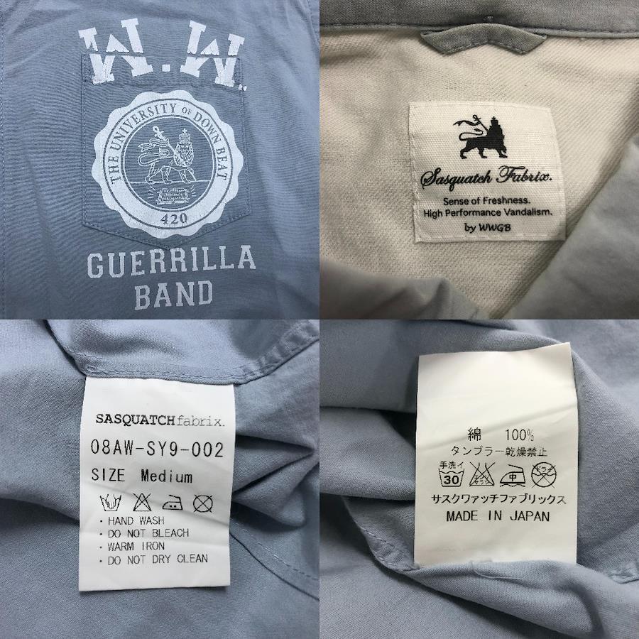 【管理番号】02w14340【ブランド】サスクワァッチファブリックス(SASQUATCHfabrix.)【対象】メンズ【カラー】ライトブルー【生産国】日本【サイズ】ケース:約mm表記サイズ:EUM肩幅:約40cm着丈:約68cm身幅:約48cm袖丈:約59cm【素材】13791【付属品】なし■コンディション・状態【状態ランク】B首回りや袖口などに汚れが見られます。プリントにひび割れがあります。