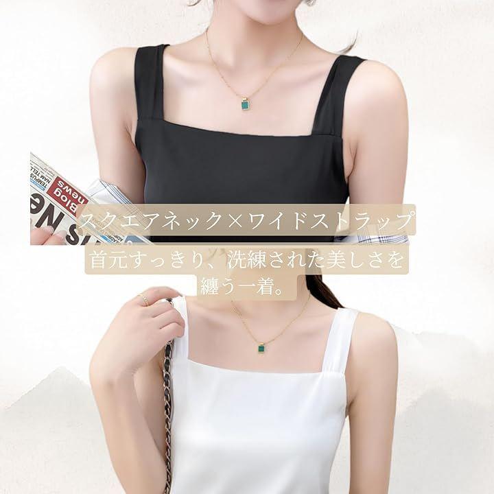 「太めの肩ひも設計」 太めの肩ひもデザインは、下着の紐をしっかり隠し、安心感のある着こなしを実現。