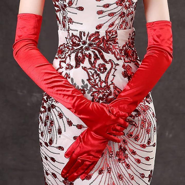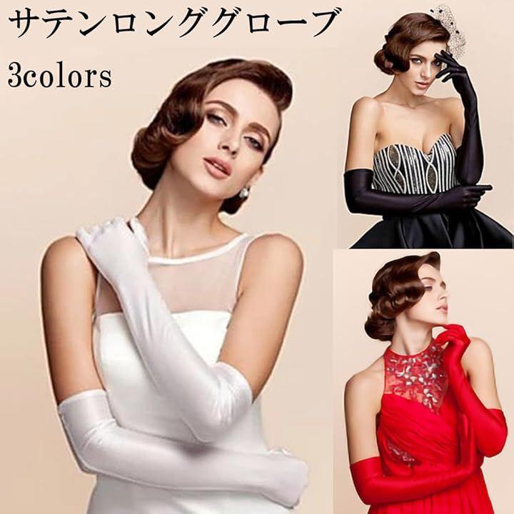「カラーバリエーション」 ・黒(クラシックな黒手袋はフォーマルシーンにぴったり) ・白(純白のウェディンググローブとして結婚式に最適) ・赤(華やかさを演出しサテン手袋ならではのセクシーさをプラス)