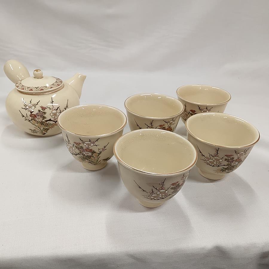 薩摩焼 茶器セット 急須(きゅうす)x1 湯呑み(ゆのみ)X5 です。中古品・長期保管により汚れ等。経年劣化しているかもしれません。