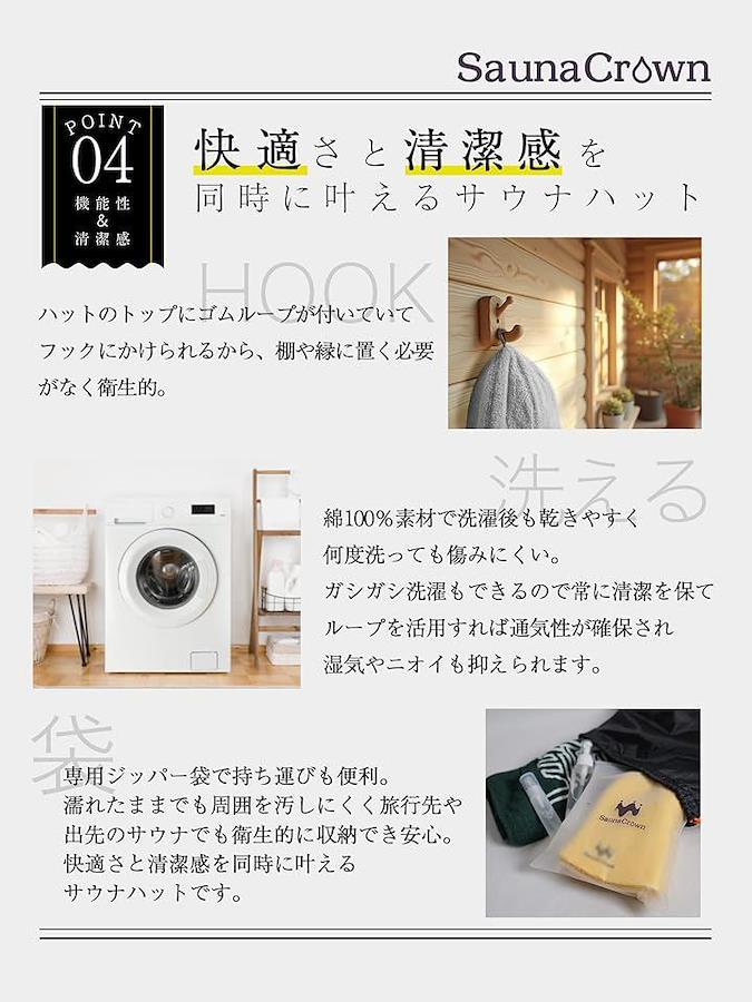 吸水性と保温性に優れているので、快適なサウナタイムをサポートします。