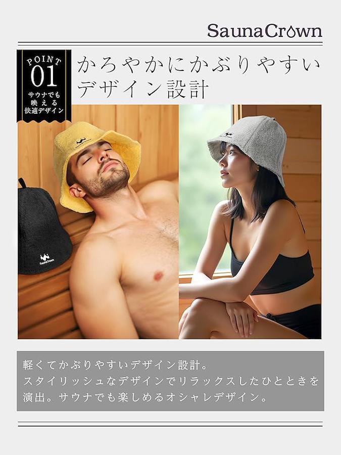 軽くてかぶりやすいデザイン設計なので、メンズ・レディース問わず使えるユニセックス仕様で、サウナでのひとときを心地よく演出します。