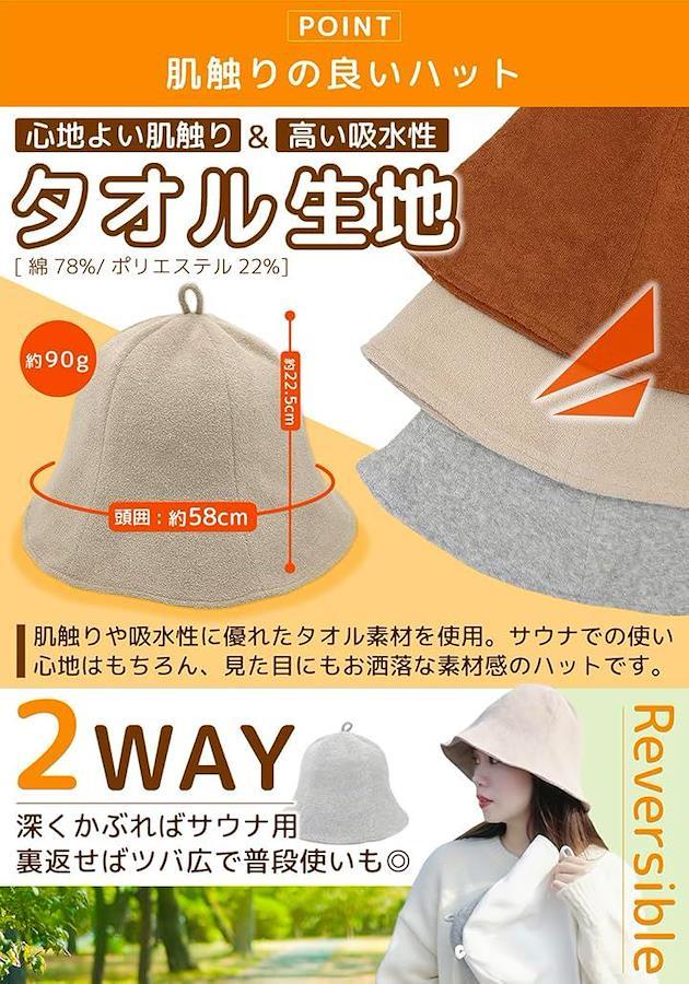 「シンプル&リバーシブルデザイン 」 深くかぶればサウナ用、裏返せばツバ広で普段使いもOK。2WAY仕様でシーンに合わせたスタイルを楽しめます。