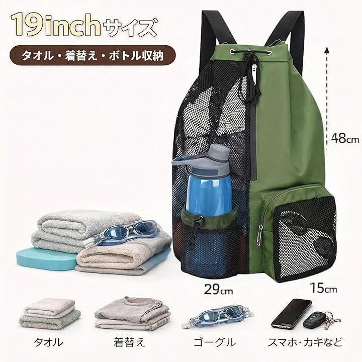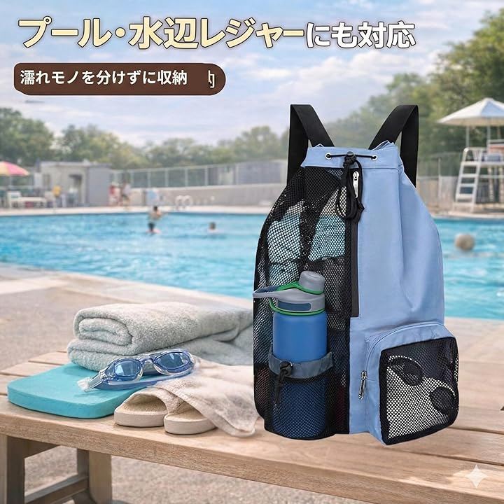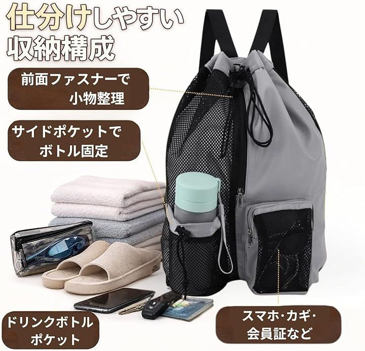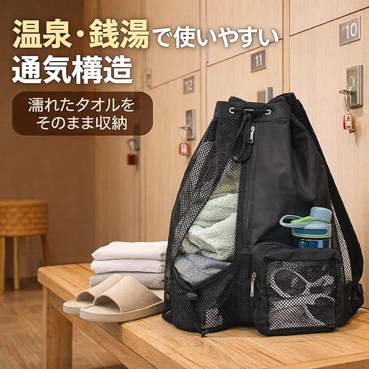 濡れ物の扱いやすさ、整理しやすい収納構成、軽量で折りたためる利便性を備えたこのメッシュバッグは、温泉やジムを日常に取り入れている方から、レジャーやスポーツを楽しむ方まで幅広く使えるアイテムです。