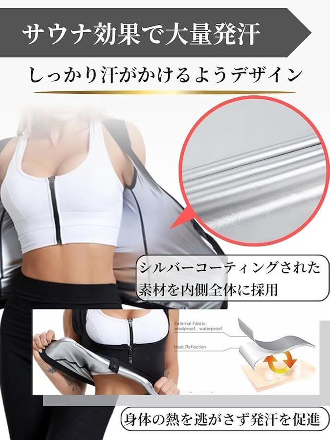 「大量発汗による様々な効果」特殊な熱ロック素材を採用しており、内側のシルバーコーティングが体の熱を逃がさず閉じ込めることで高発汗を促進してくれます。