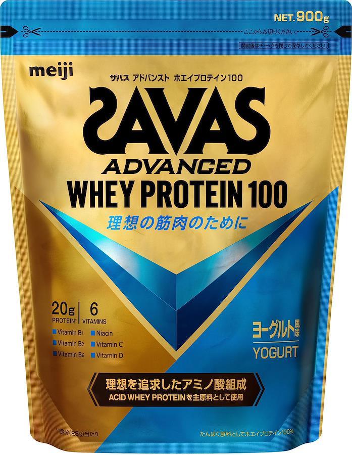 ●「ザバスホエイプロテイン100」は、明治が実施したアスリートの食事調査結果に基づき、アスリートのカラダづくりに必要とされるビ汐ミンを独自に設計して配合しています。 内容量:900g 1食(28g)当たり:エネルギー109kcal たんぱく質20g 脂質1.7g 炭水化物3.3g 食塩相当量0.23-0.68g ナイアシン当量4.5-13.9mg ビタミンB10.67mg ビタミンB20.76mg ビタミンB60.56mg ビタミンC43mg ビタミンD12.1μg 原材料:乳清たんぱく(外国製造)、植物油脂/酸味料、乳化剤、甘味料(アスパルテーム・L-フェニルアラニン化合物、アセスルファムK、スクラロース)、香料、V.C、増粘剤(プルラン)、V.B2、V.B6、V.B1、ナイアシン、V.D、(一部に乳成分・大豆を含む) 使用方法:水または冷たい牛乳に付属のスプーン4杯(約28g)を溶かす。※溶かす飲み物の量は、お好みに応じて調整してください。プロテインの摂取には個人差があります。初めての方や量が多いと思われる方は、少量ずつご試飲ください。スプーン1杯の目安はすりきりです。 ヨーグルト風味