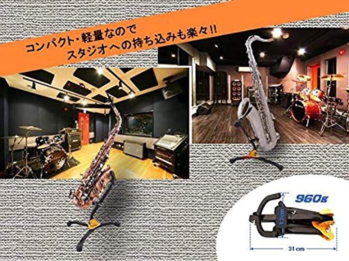 「軽量・小型」持ち運びに便利な、折り畳み式のアルト/テナー兼用サックススタンド。