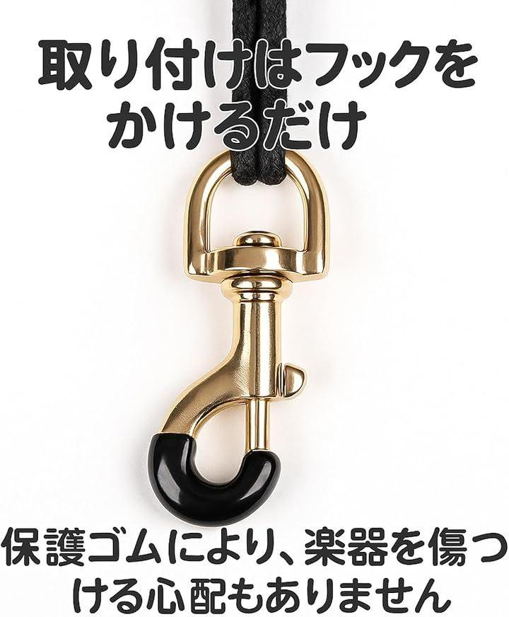 フック部分にはゴムが巻かれており、楽器を傷つける心配もありません