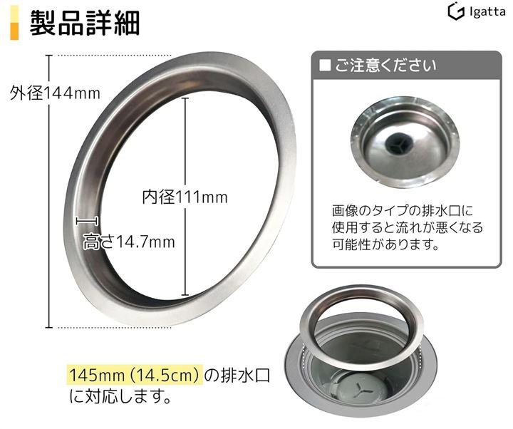 「商品仕様」〇サイズ:外径144mmx内径111mmx高さ14.7mm 〇素材:ステンレス鋼(SUS304) 〇ブランド:Igatta