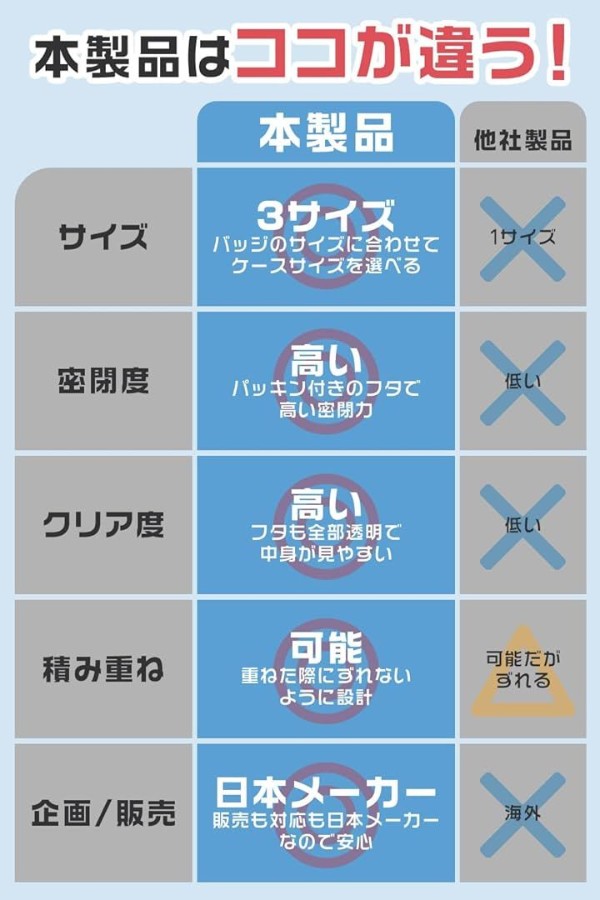 集めたバッジを大切に守り、きれいに整理できるケースは、コレクターに喜ばれるアイテムです。