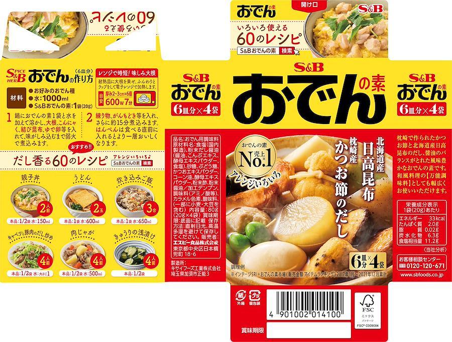 鹿児島枕崎産のかつお節と北海道日高産昆布のだし、醤油のバランスがとれた風味豊かなおでんの素です。おでん料理のほかにも和風料理のだしの素として幅広くお使いいただけます。