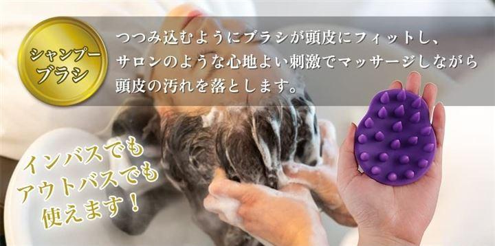 ・「インバス&アウトバスでも」シャンプー時、つつみ込むようにブラシが頭にフィットし、サロンのような心地よい刺激で頭皮マッサージしながら汚れを落とします。