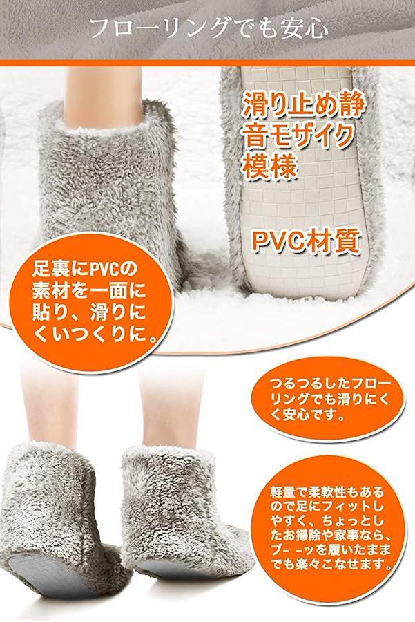 足首まで覆ってくれるブ一ツタイプのル一ムシュ一ズは、スリッバだけではカバ一しきれなかった足元全体を覆い、やっかいな足元の冷気をシャットアウト。