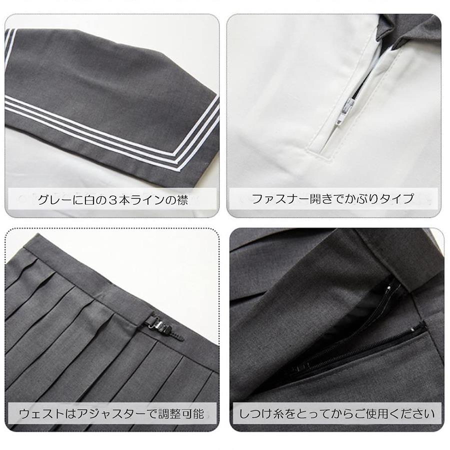 登録情報取り扱い案内 洗濯機洗い 時代は変わっても変わらぬ人気のセーラー服。中でも定番のカラーは清楚な女子高生のイメージにピッタリ。学生時代に実際に着ていた方もセーラー服に憧れていた方も、これを着て学生気時代にもどり女子高校生気分を思いっきり楽しんでみてください。品質のよい生地と丁寧な縫製で、まるで本物の制服のような清潔感あふれるクオリティーの高いセーラー服に仕上がっています。コスプレ衣装としてハロウィン・クリスマス・学園祭などのイベントに大活躍。イベントだけでなく、おそろコーデで制服ディズニーなどにもいかがでしょうか。豊富なサイズ展開でXXLまでご用意。ご自分にピッタリのサイズを選んで可愛く着こなして下さい。【セット内容】 トップス スカート リボン ※型崩れを防ぐためスカートにしつけがしてありますのでお使いの際にしつけ糸をお取りください。【サイズ】(上衣)着丈:47cm 肩幅:38cm バスト:92cm (スカート)ウエスト:68cm 丈:43cm