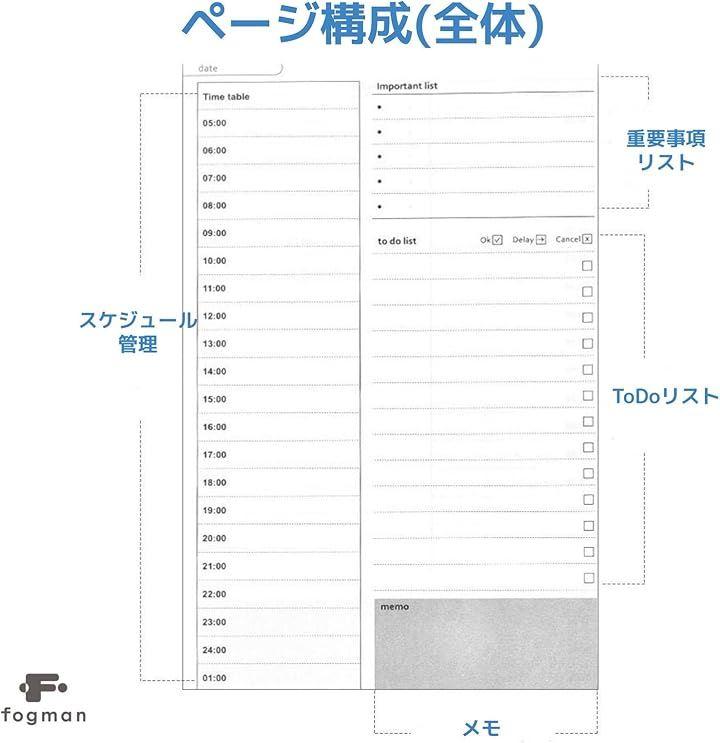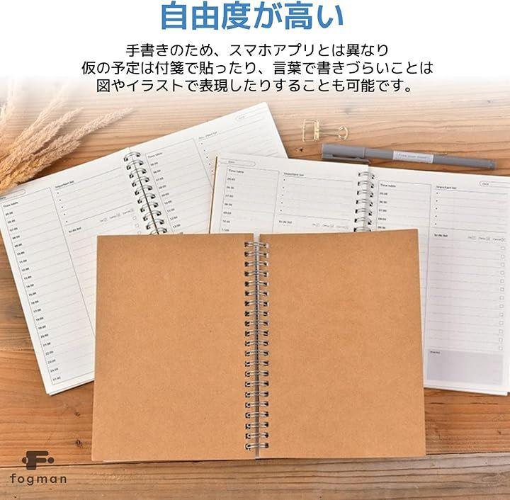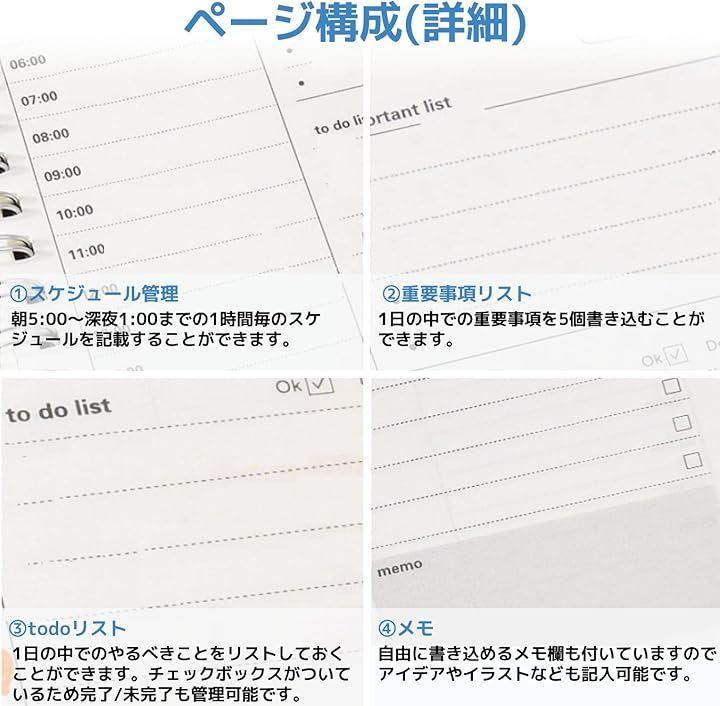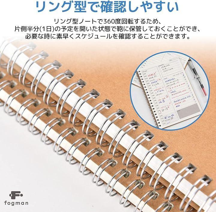 「リング型で確認しやすい」リング型ノートで360度回転するため、 片側半分(1日)の予定を開いた状態で鞄に保管しておくことができ、 必要な時に素早くスケジュールを確認することができます。
