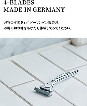 商品紹介●シック ドイツ ゾーリンゲン製替刃の4枚刃カミソリ ●チタニウム*、鋭い切れ味、長続き*チタンコート刃 ●セーフティーワイヤー付きチタンコート4枚刃。 ●ホホバオイルアロエビタミンE配合のスムーザーが、刃のすべりを滑らかにし、剃り心地を快適に。大型ガードバーが肌をのばし、ヒゲを剃りやすい状態にします。 ●キワを整えるデザインカッター付。Design, Specification, Appearance and price can change without notice商品のデザイン、仕様、外観、価格は予告なく変更する場合がありますのでご了承ください。使用上の注意●カミソリは刃物です。お取り扱いにはご注意願います。 ●替刃の刃の部分には直接手を触れないでください。また、落としたり、強い衝撃を与えないでください。これらは、刃こぼれの原因となり、肌を傷めるおそれがあります。 ●カミソリを落とした場合は、替刃を交換してください。 ●小さなお子様の手の届かないところに保管してください。 ●肌に異常がある時は、使用しないでください。使用中、肌に異常がでたら使用を中止し、皮膚科医に相談してください