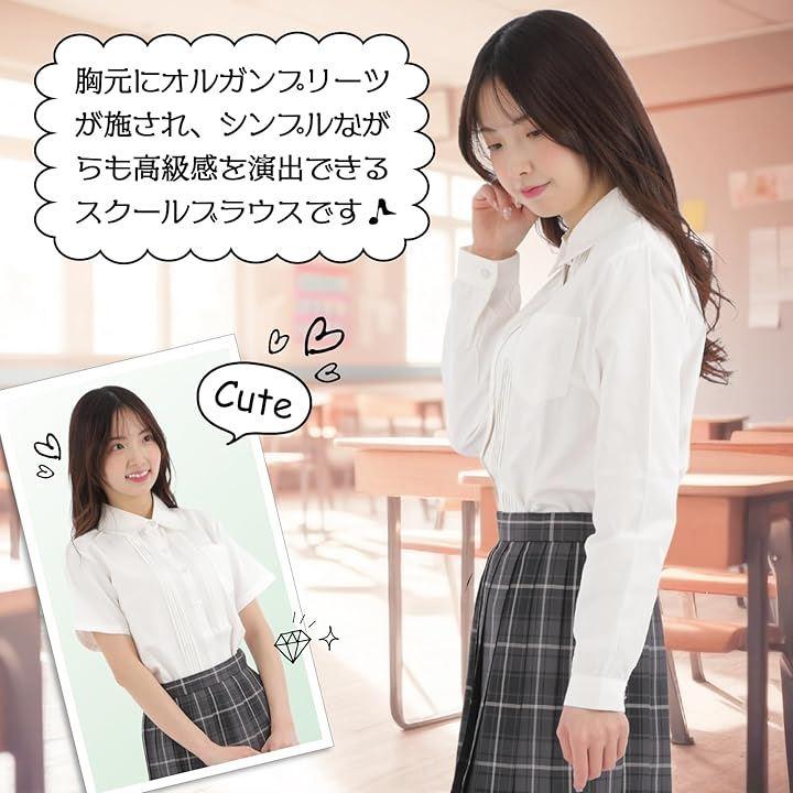 胸元にオルガンプリーツが施され、シンプルながらも高級感を演出できるスクールブラウスです。