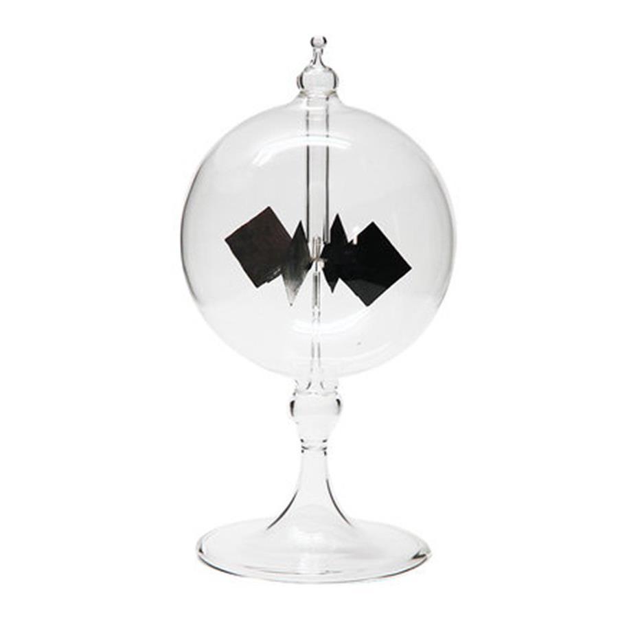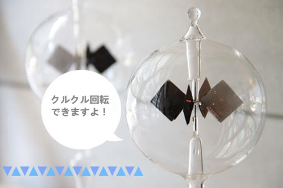 ◆理科室にあった魅惑のオブジェ!ラジオメーターは、1800年代にイギリスの物理学者ウィリアム・クルックスによって発明された実験用の器具。真空のガラス球の中には4枚の羽根が設けられます。その羽根が白と黒に塗り分けられる面にあたる日光などによって温度差、くるくると回転します。◆心地よいライフスタイルに!光を受けて回る姿が涼しげで愛らしいオブジェ。レトロな雰囲気からインテリアグッズとしてすっごく人気を集めています。お日様を浴びて、くるくる回るさまに癒されてみて♪◆光や熱で回る羽根車!太陽光で羽が回るクラシカルなオブジェ赤外線を含む太陽光や光熱に反応して動く羽根車が、光の強弱に比例して、回転する速度が変化します。ガラス容器は密閉されており、風などの影響を受けないようになっています。商品仕様:材質:ガラス&メタル本体サイズ:S 約120×70×70mmカラー:ホワイト羽根:4枚※蛍光灯には反応しません。太陽光や白熱灯に反応します。※まれにガラス球内部の金属板の黒い塗装が剥げ落ちる場合がございます。製品の品質には問題ございませんので、あらかじめご了承ください。面白い商品学生たち、子供、友人や誕生日へのプレゼントに!部屋飾り、科学玩具として、ピッタリです。 【不思議なでオシャレな工芸品&置物】:窓辺で太陽光を受けて、また赤外線を含む室内灯の光で羽がクルクルと回りのクラシカルなインテリア小物。 【回転する原理】:真空のガラス球の中には4枚の羽根が設けられます。その羽根が白と黒に塗り分けられる面にあたる日光などによって温度差、くるくると回転します。 【光の強さに敏感反応】:光の強さ、光源によって回転する速度が変わります。太陽光線や白熱灯など、赤外線(熱線)を含んだ光線を当てると回転しますが、蛍光灯やLEDなどの少ない光ですと反応がありません。(充電やバッテリー不要) 【材質】:ガラス+メタル;【本体サイズ】:約130×70×70mm;【羽根】:4枚;【用途】:インテリア&科学実験器具 対象年齢:8歳以上です。 【心地よいライフスタイル】:光を受けて回る姿が涼しげで愛らしいオブジェ。そのお日様を浴びて、くるくる回っている姿は見てるだけで癒やされます。