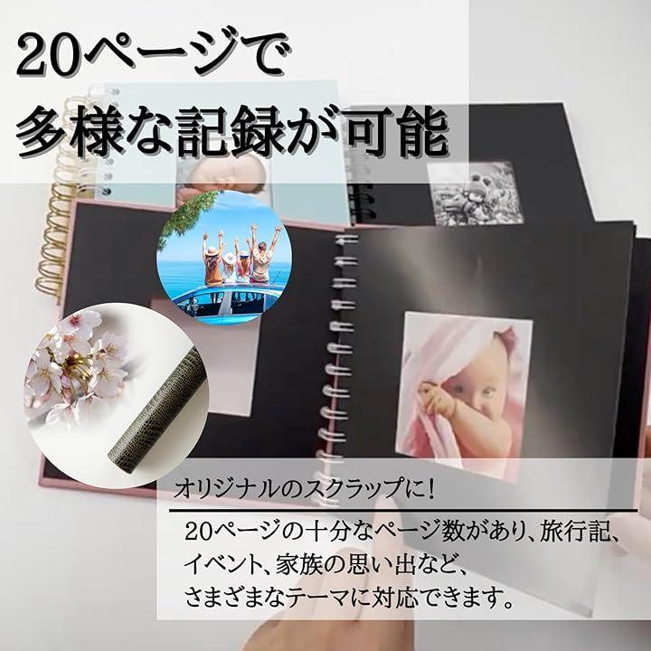「20ページで多様な記録が可能」20ページの十分なページ数があり、旅行記、イベント、家族の思い出など、さまざまなテーマに対応できます。