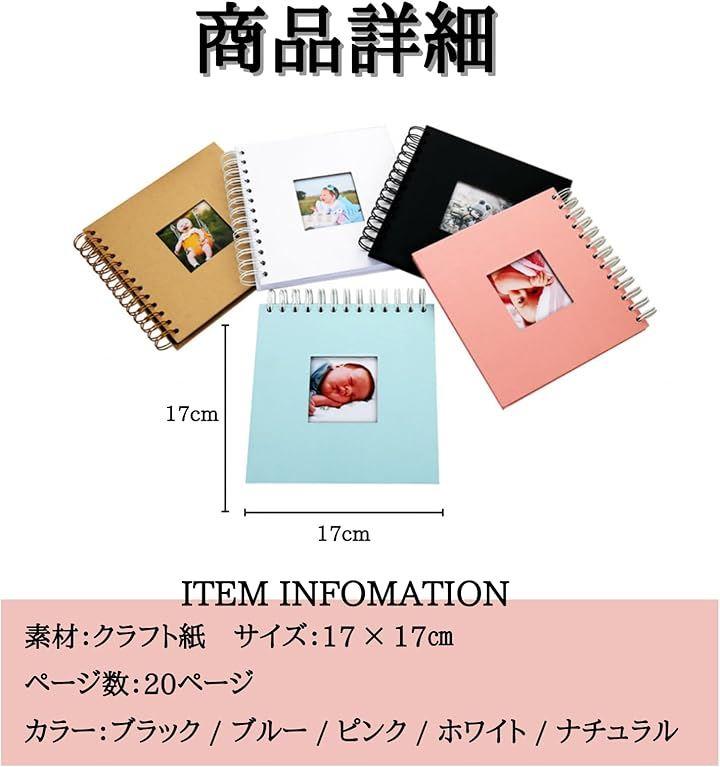 「商品詳細」素材:クラフト紙 サイズ:17 x 17cm ページ数:20ページ カラー:ブラック / ブルー / ピンク / ホワイト / ナチュラル このリング式スクラップブックは、自由なデコレーションとカスタマイズが楽しめるアイテムです。