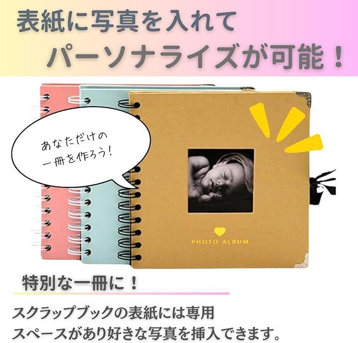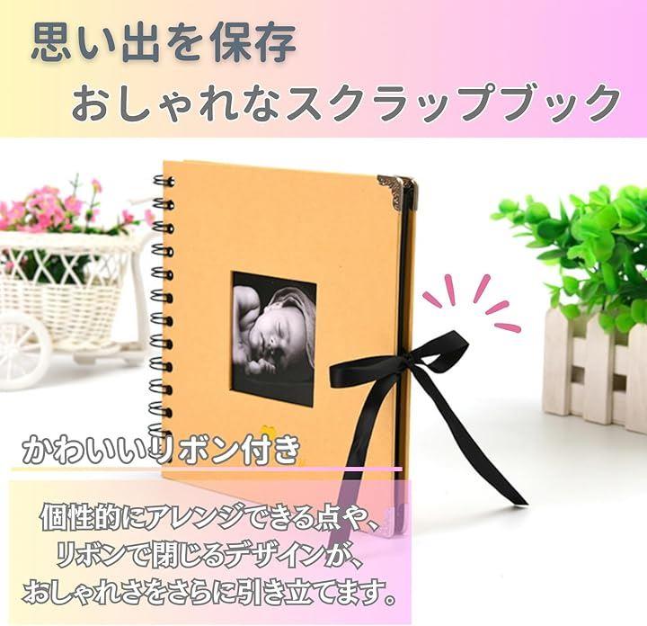 「おしゃれなスクラップブックで思い出を保存」このスクラップブックは、デコレーションを楽しみながら大切な思い出を長期間保存できます。