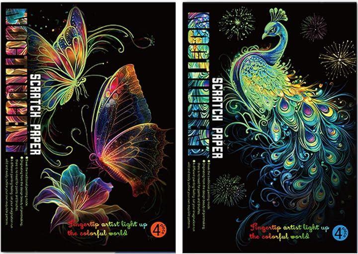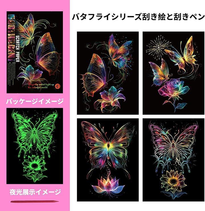「セット内容」:「多彩なデザイン」スクラッチアート8枚セットにスクラッチペンが付属。