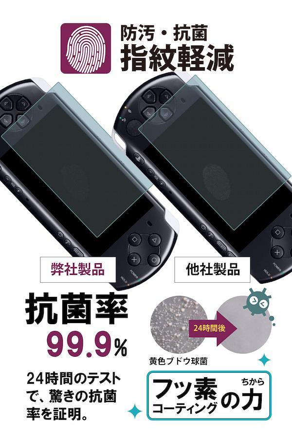 [Compatible Models] PSP-3000/2000; [Complete Set Contents] Protective Sheet, Wet Wipe, Cleaning Cloth, Dust Removal Seal, Japanese Instruction Manual (English Language Not Guaranteed) Made in Japan: Made with high quality Japanese film 32.2% Blue Light Reduction: The high blue light reduction rate protects your child's precious eyes (99.9% Antibacterial Rate) High antibacterial rate keeps your screen clean. Fingerprint Protection: It is resistant to fingerprints and dirt, and can be easily wiped off even when adhered to them Scratch Resistant: The hard coat is scratch-resistant and highly durable. (Anti-Bubble) The suction surface is made of special silicone resin that allows air bubbles to be easily released