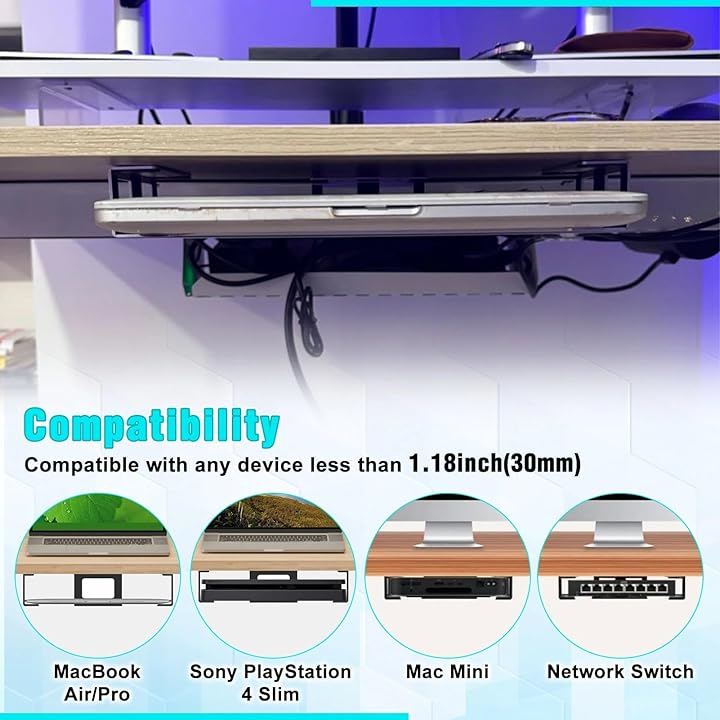 コンパクトなデザインにより、デスク下マウントは他の必需品のための十分なスペースを確保し、無駄になっていたデスク下の空間を有効活用します。