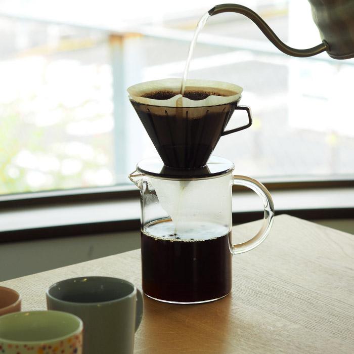 透明感があり、シンプルなデザインのガラスのポットはポタリポタリと落ちてくるコーヒーの様子や、コーヒーの色合いを確認しながらドリップの調整をしたりできます。