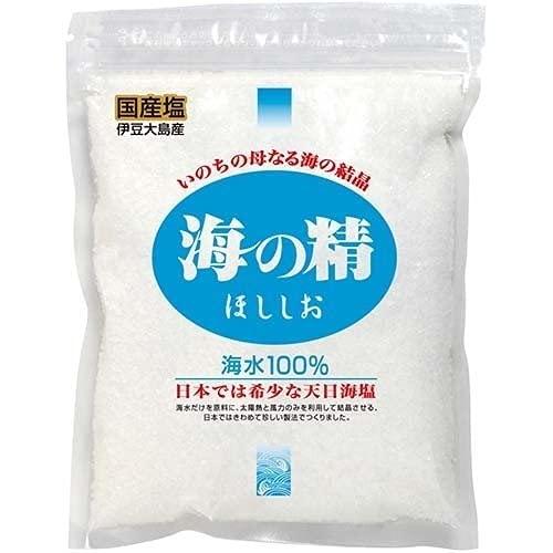 海の精ほししお(青) 240gは、伊豆大島産の海水100%を原料に天日の熱の力と自然がもたらす風の力だけを利用して海水を蒸発、塩の形に結晶化させる珍しい製法でつくったお塩です。粒子は粗く、ザラメ状でしっとりタイプ。マイルドで奥深い味わい、まろやかな味で人気。煮物などお料理、材料の下味につかって旨みをプラスします。