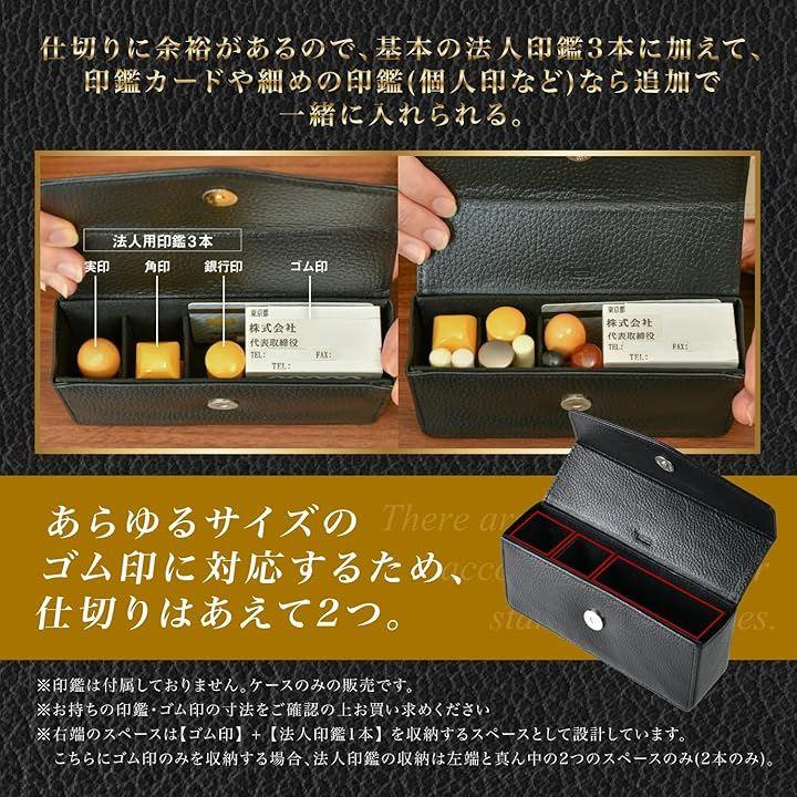 ・「収納力について」法人用印鑑3本とゴム印をまとめて収納できます。