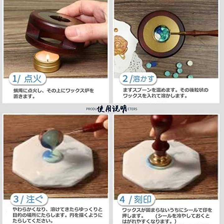 ・「セット内容」 ワックス炉x1点、スタンプ板 x1点 「サイズ」炉:長さ7.7cm 幅3.5cm ,スタンプ板:直径9cm 「 材質」炉:ローズウッド,板:陶器 「重量」炉:100g, 板:110g 中国製