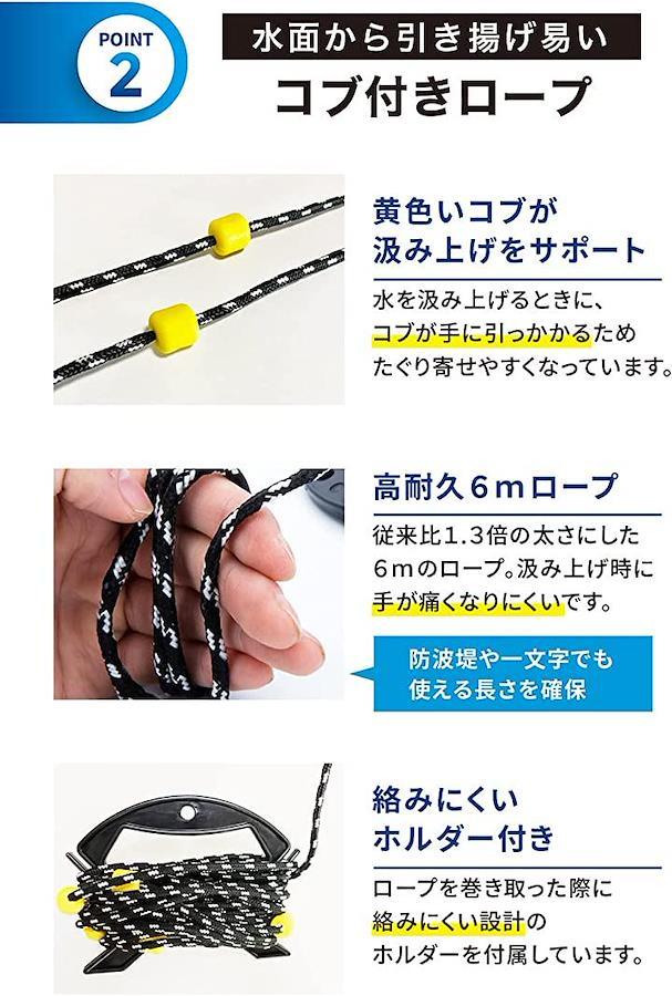 たぐり寄せやすいコブも付いており、水の汲み上げ作業をサポートします。