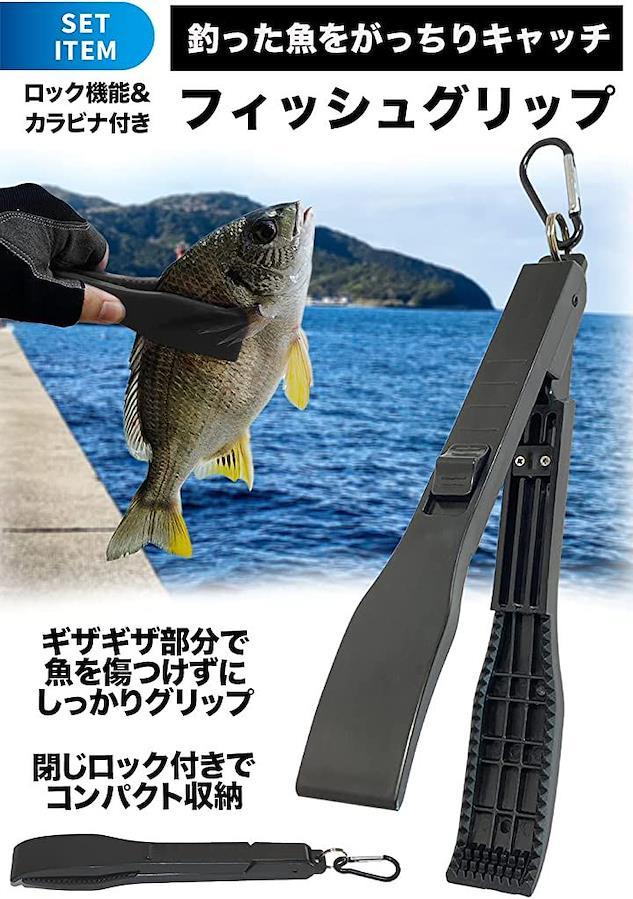 釣った魚を外して、掴んで、バケツでキープ という流れで3点セットが活躍します。 プライヤーにはコード&カラビナ、フィッシュグリップにはカラビナが付いており、充実のセット内容となっています。