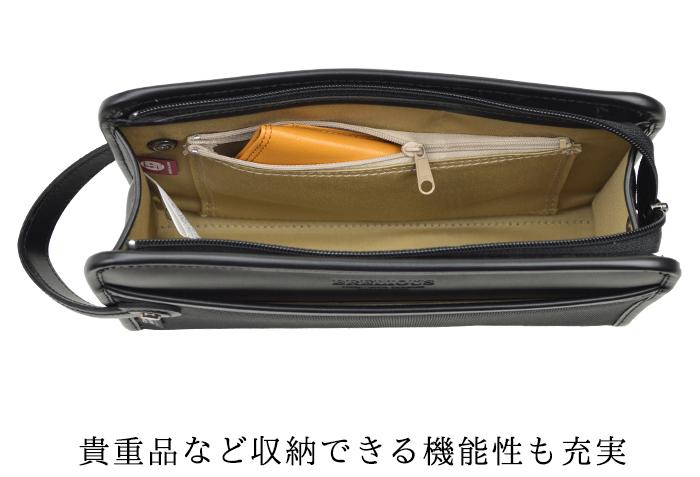 ◆ 通常より強い生地で作られた堅牢で軽快に使えるセカンドポーチ!◆ 摩擦・引き裂き・擦り切れに強い耐久性と持続性を備えたコーデュラナイロンを使用!◆ 強い生地で作られ、小型で気軽に持てるのでアクティブなビジネスマンにおススメ。◆ コンパクトサイズながら小物を分けて収納できるポケットなど機能も充実!◆ 冠婚葬祭などフォーマルな場に、またビジネスシーンでもお使いただけます。◆ カラーは、大人の高級感、誠実な印象を感じる「黒」!