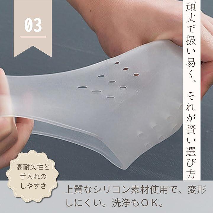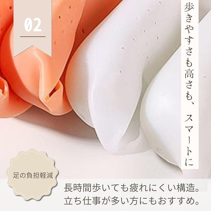 「足の負担軽減」シリコン素材のクッションが足の圧力を減少させ、長時間の歩行や立ち仕事でも快適です。