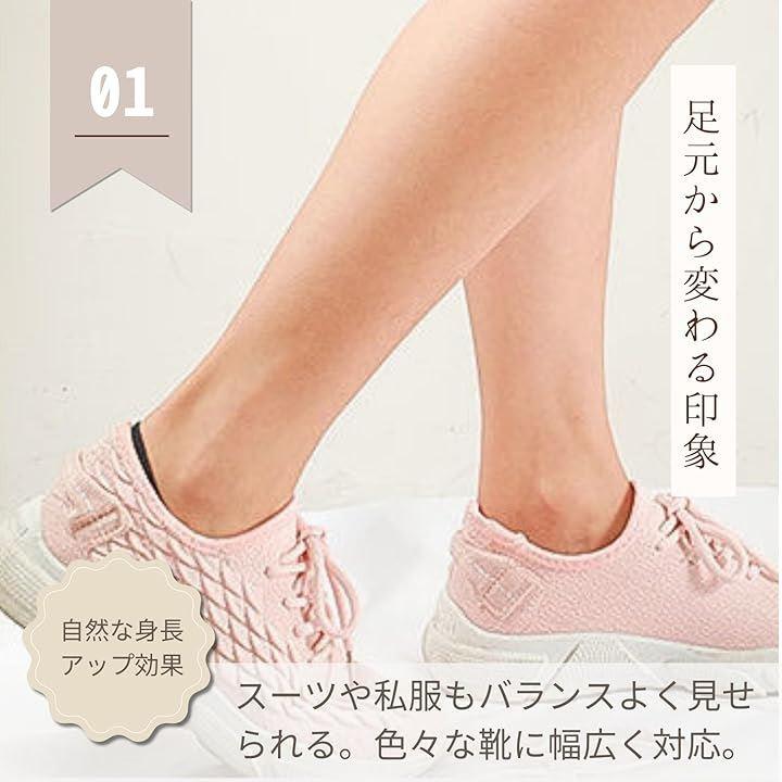 「自然な身長アップ効果」靴を脱いでも目立たないデザインで、3cmから5cmまでの高さ調整が可能です。