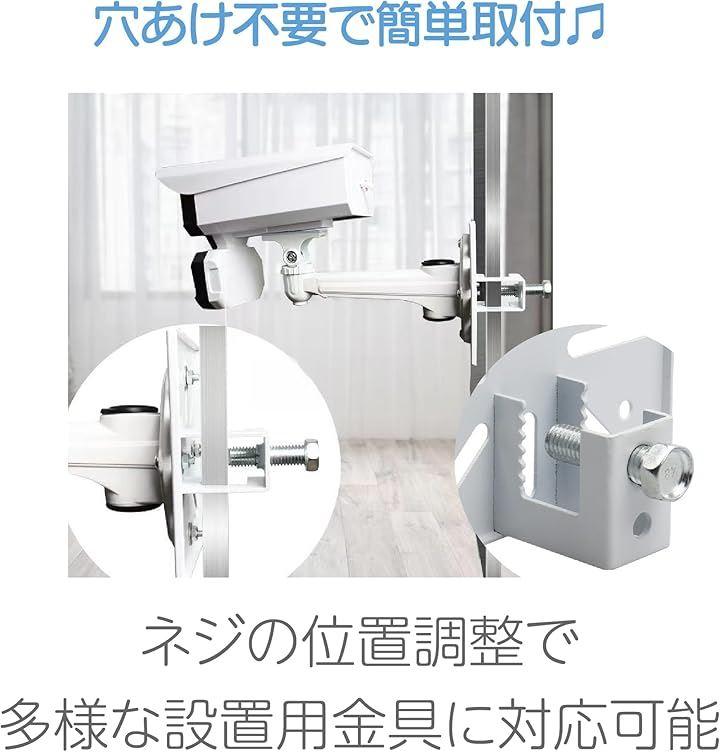 「穴あけ不要で簡単取付」 この防犯カメラ取り付け用ブラケットは、ネジの位置調整で多様な設置用金具に対応可能です。