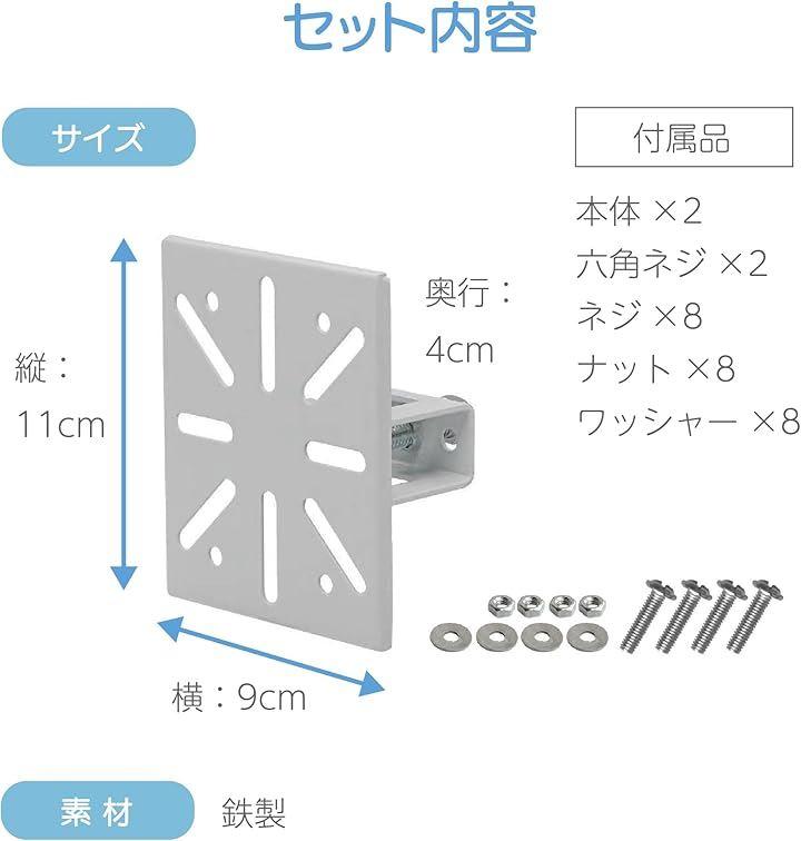 「セット内容」 *2点セット サイズ:縦:約11cmx横:9cmx奥行き:4cm 素材:鉄製 付属品:六角ネジ, ネジ, ナット,ワッシャー