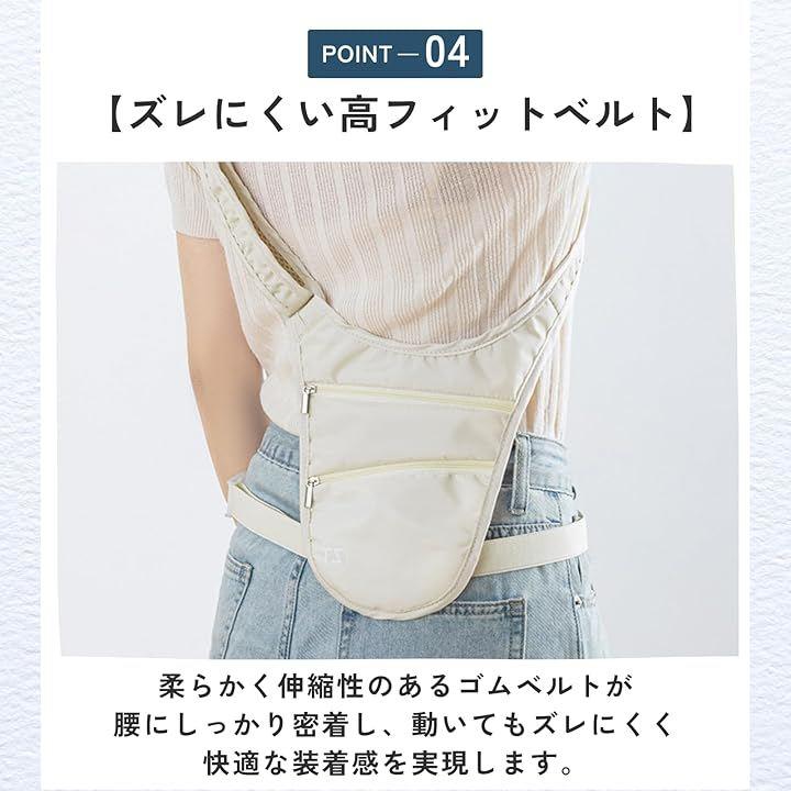 「ズレにくい高フィットベルト」柔らかく伸縮性のあるゴムベルトが腰にしっかり密着し、動いてもズレにくく快適な装着感を実現します。