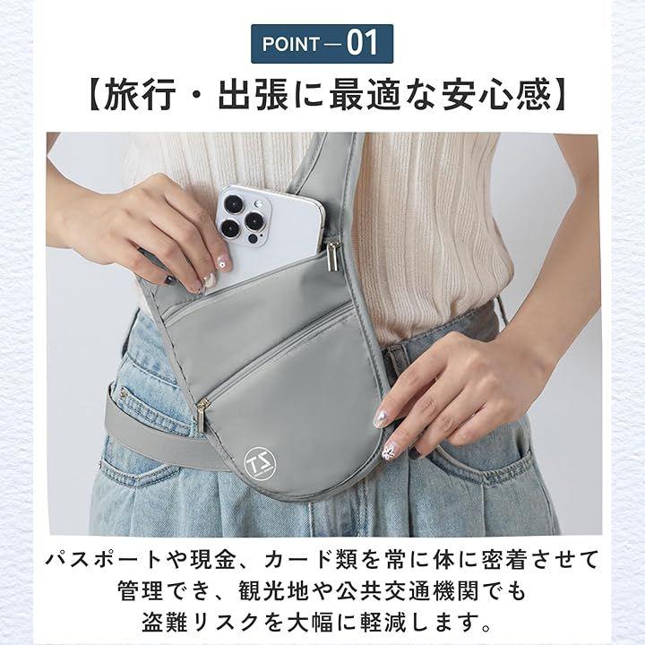 「旅行・出張に最適な安心感」パスポートや現金、カード類を常に体に密着させて管理でき、観光地や公共交通機関でも盗難リスクを大幅に軽減します。