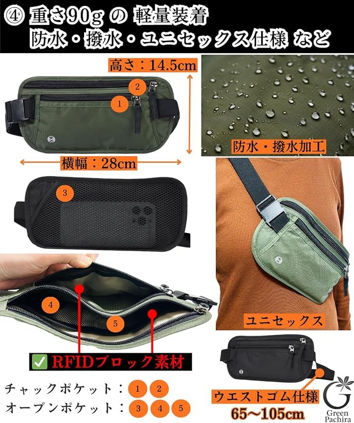また、高品質な防水ナイロン素材を使用し、雨や汗から貴重品を保護します。