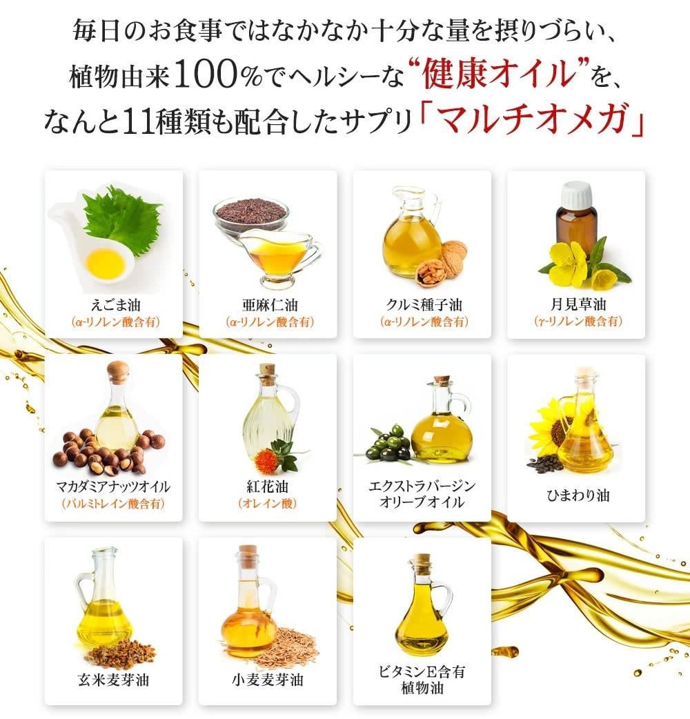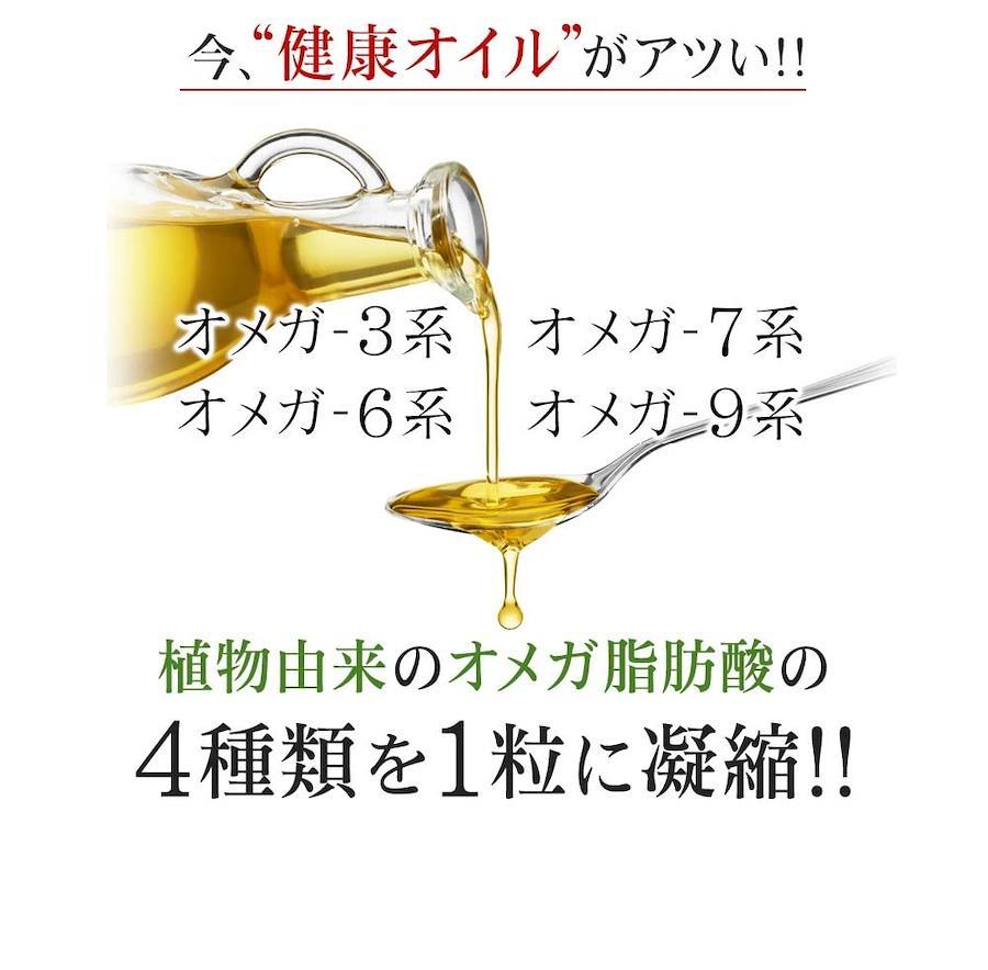 安全上のお知らせ原材料をご参照の上、食品アレルギーのある方はお召し上がりにならないでください。<br> また、体質や体調によりまれに合わない場合があります。その場合は摂取を中止してください。●薬を服用、あるいは通院中、妊娠、授乳中の方のお召し上がりの際は、お医者様にご相談ください。●乳幼児の手の届かない所に置いてください。●乾燥材が入っていますので、誤って召し上がらないようご注意ください。●保存方法:高温多湿を避け、常温保存してください。原材料・成分えごま油(国内製造)、亜麻仁油、月見草油、マカダミアナッツオイル、紅花油、クルミ種子油、オリーブ油、ひまわり油、玄米胚芽油、小麦胚芽油、ビタミンE含有植物油/ゼラチン、グリセリン使用方法1日1粒を目安にお飲みください。