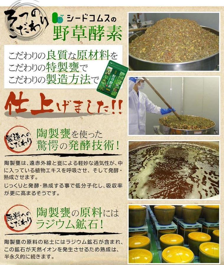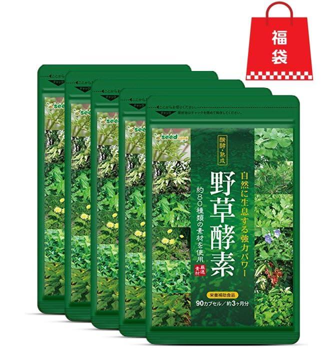 ■サイズ: ■シードコムスの人気のサプリメント 福袋 ■原則として福袋の返品は承っておりません。 ■メーカー希望小売価格が総額で4,900円相当の商品が入っています。 美容トラブルや頑固な詰りは酵素で基礎から見直しませんか? すっきりスタイルへ向けて酵素ダイエット! 本来、酵素を含む発酵食品は独特の味や香りがあり、この独特な味や香りが苦手という方も中にはいらっしゃいます。 そんな中、飲み易さや喉越しを優先的に考慮し、味の調整をしている商品が数多く見受けられるような気がします。 シードコムスの野草酵素は「自然からの恵みをそのままに」を コンセプトにしている為、味の調整は一切ございません実際にカプセルの中身を舐めてみても美味しいとは言えません。 しかし・・・。「味は悪くとも本当に良いものをお客様にご提供したい」「自然の恵みに手を加えていない味をご体感頂きたい」この思いからカプセルに包めば気兼ねなくお試しいただけると思い野草酵素を開発致しました。 ~約80種類の野草・野菜・果実~ヨモギ・うこん・スギナ・ドクダミ・杜仲葉・クコの実・クコの葉・はと麦・アマチャヅル・タンポポの根・ツユ草・クマザサ・オトギリソウ・ナンテンの葉・アカメガシワ・ハブソウ・ビワ葉・マタタビ・アムラの実・アザミ根・ナツメ・イチョウ葉・エゾウコギ・アガリクス・田七人参・エンメイ草・アマドコロ・柿の葉・カミツレ・カンゾウ・キキョウ根・キャッツクロー・キダチアロエ・イチジクの葉・ショウブ葉・セッコツボク・シソ葉・ツルナ・エビス草の種子・メグスリの木・モモの葉・ラカンカ・ルイボス・レンセンソウ・桑葉・紅参・オオバコ・霊芝・高麗人参・トンカットアリ・ニンドウ・ベニバナ・マカ・マツ葉・ニン二ク・カリン・グレープ・メロン・リンゴ・パイナップル・イチジク・レモン・ミカン・ウメ・グレープフルーツ・キンカン・杏・玉葱・唐辛子・牛蒡・人参・生姜・モロヘイヤ・大蒜・パセリ・キャベツ・モヤシ・椎茸・昆布・布海苔 約3ヶ月分90粒入×5袋 ■重要なお知らせ原材料・成分植物発酵エキス末(デキストリン、植物発酵エキス)(リンゴを含む)(国内製造)、食用こめ油、サフラワー油/ゼラチン、グリセリン、グリセリン脂肪酸エステル、ミツロウ ★~約80種類の野草・野菜・果実~★ヨモギ・うこん・スギナ・ドクダミ・杜仲葉・クコの実・クコの葉・はと麦・アマチャヅル・タンポポの根・ツユ草・クマザサ・オトギリソウ・ナンテンの葉・アカメガシワ・ハブソウ・ビワ葉・マタタビ・アムラの実・アザミ根・ナツメ・イチョウ葉・エゾウコギ・アガリクス・田七人参・エンメイ草・アマドコロ・柿の葉・カミツレ・カンゾウ・キキョウ根・キャッツクロー・キダチアロエ・イチジクの葉・ショウブ葉・セッコツボク・シソ葉・ツルナ・エビス草の種子・メグスリの木・モモの葉・ラカンカ・ルイボス・レンセンソウ・桑葉・紅参・オオバコ・霊芝・高麗人参・トンカットアリ・ニンドウ・ベニバナ・マカ・マツ葉・ニン二ク・カリン・グレープ・メロン・リンゴ・パイナップル・イチジク・レモン・ミカン・ウメ・グレープフルーツ・キンカン・杏・玉葱・唐辛子・牛蒡・人参・生姜・モロヘイヤ・大蒜・パセリ・キャベツ・モヤシ・椎茸・昆布・布海苔 植物発酵エキスは収穫時期や製造時期などによって使用する原料が多少異なる場合がございます。