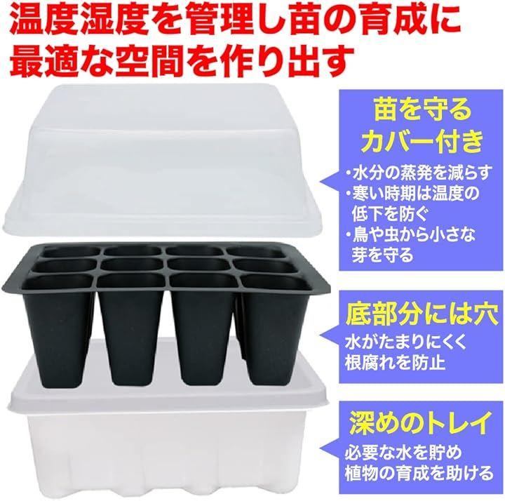 「苗を守るカバー付き」透明カバーは水分の蒸発を減らすようになり、冬の寒い時期などは温度の低下を防ぐことができます。