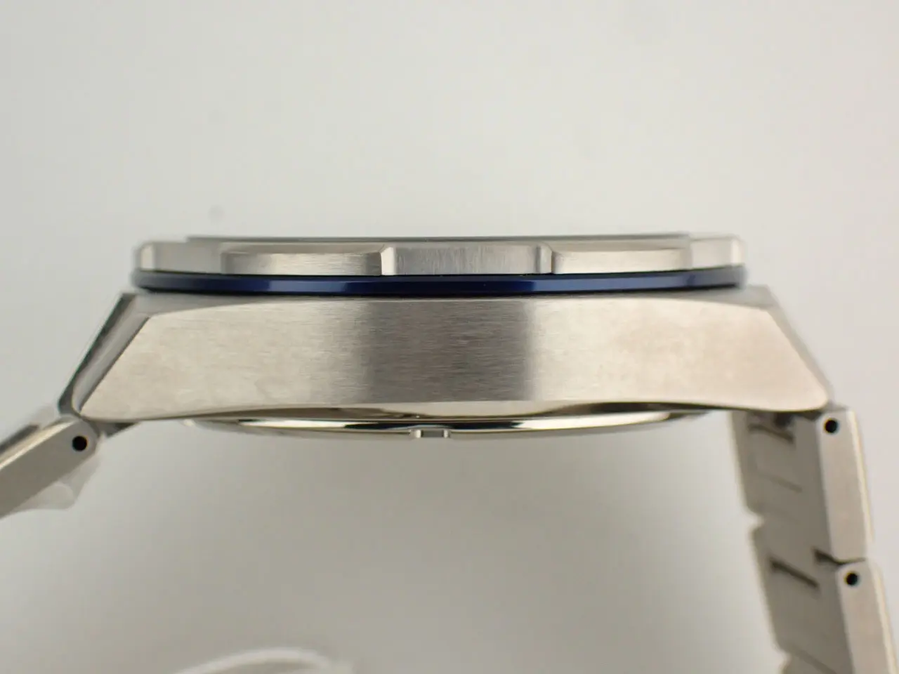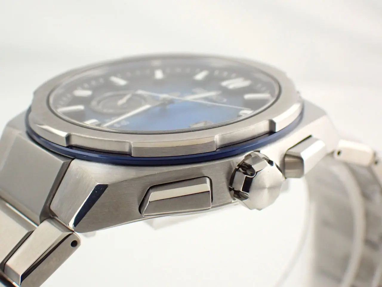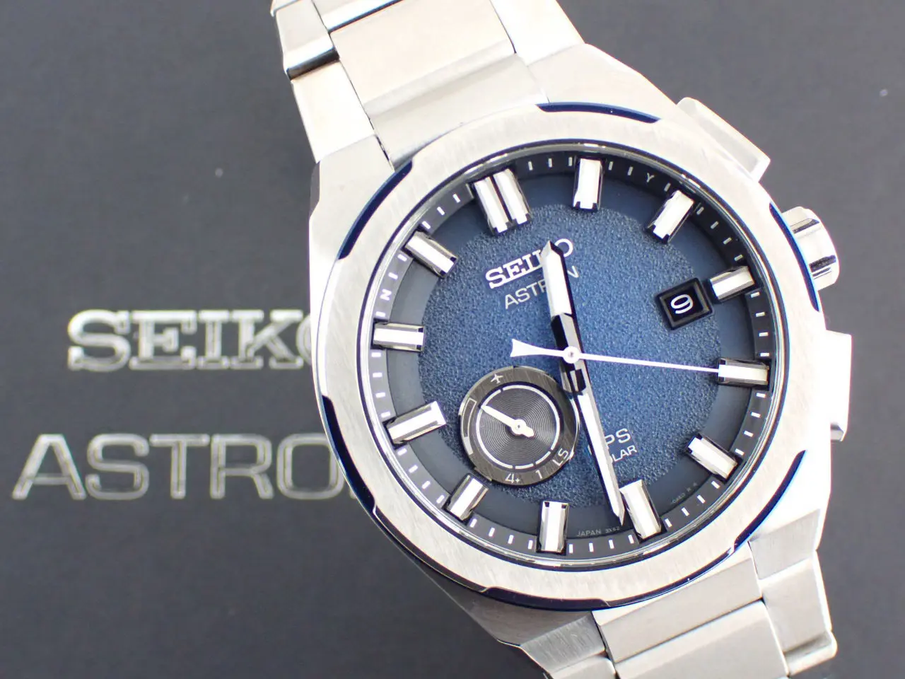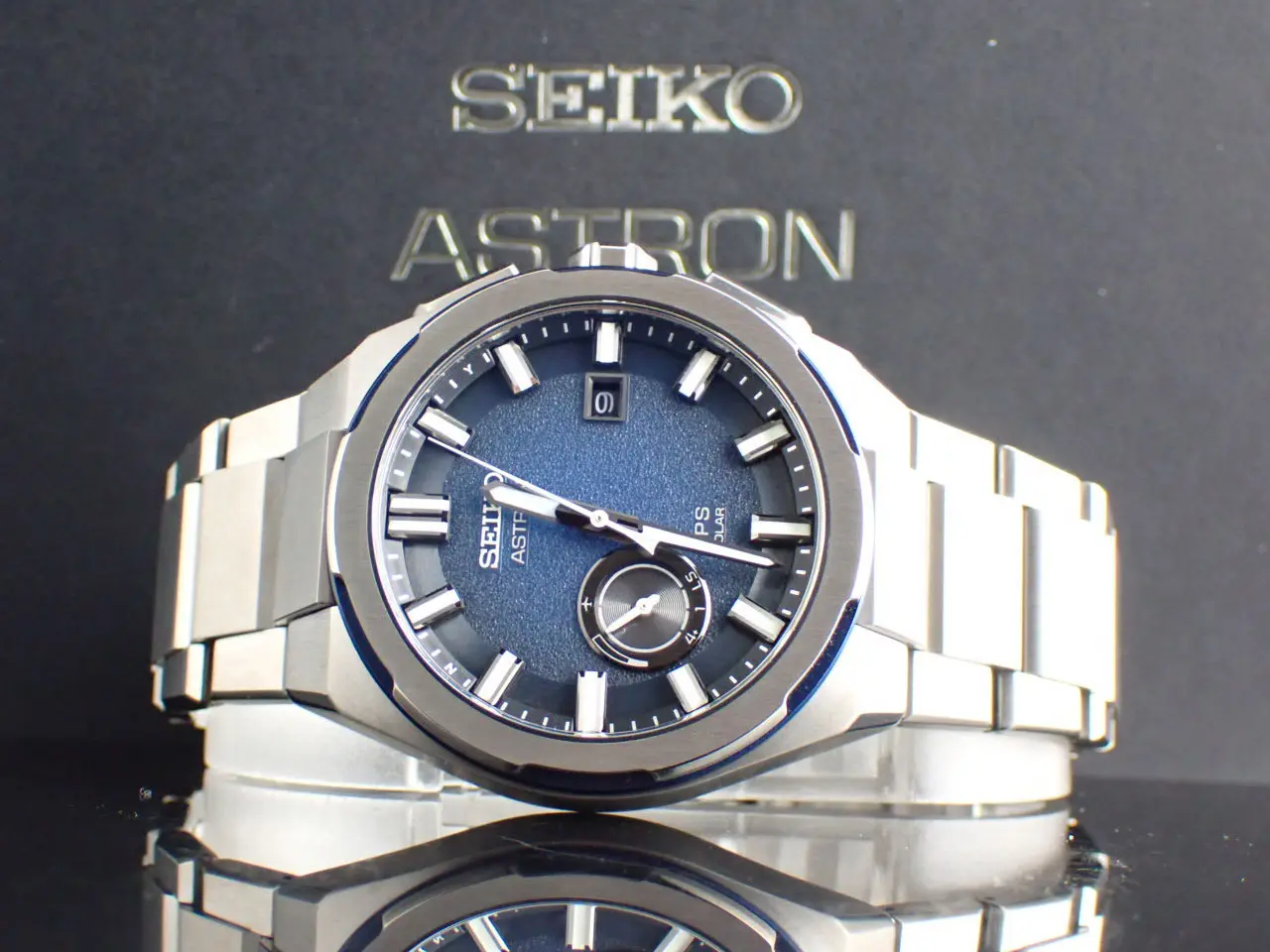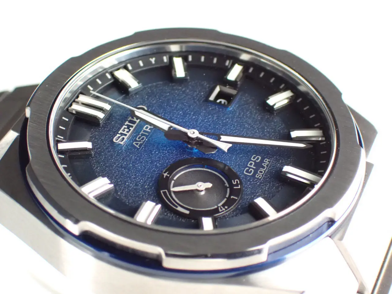 アストロンから、何ともフューチャリスティックな一本が登場!こちらは、次世代を担う人々へ向けた「アストロン」。「地球」を表現した一本です。ダイヤルはざらっとした質感のグラデーションブルー。角度を変えるときらきらと輝く仕様になっています。特徴的な二層ベゼルは下層部のブルーが顔を覗かせるという、何とも新しい腕時計の形を体現しています。
