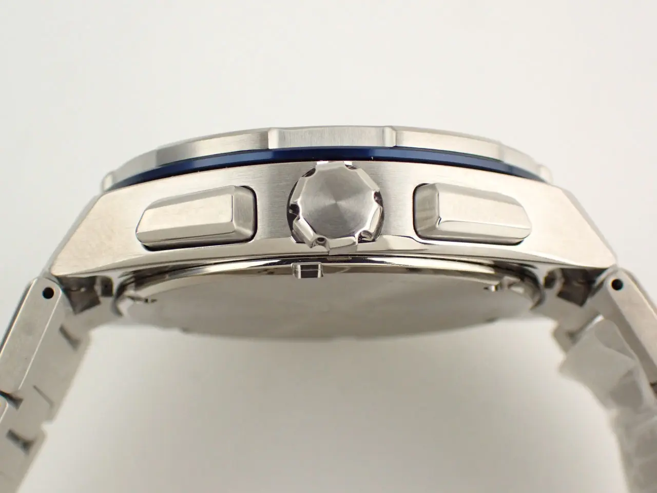 登載ムーブメントは「3X62」。独自機能「スーパースマートセンサー」「高速タイムゾーン修正機能」などの基本性能のほか、大幅に改良を加えた薄型の衛星電波受信アンテナを採用し、受信感度を向上。8時位置のサブダイヤルで、GPS衛星の受信情報や、パワーリザーブ、うるう秒データの受信情報、機内モード設定を確認できます。