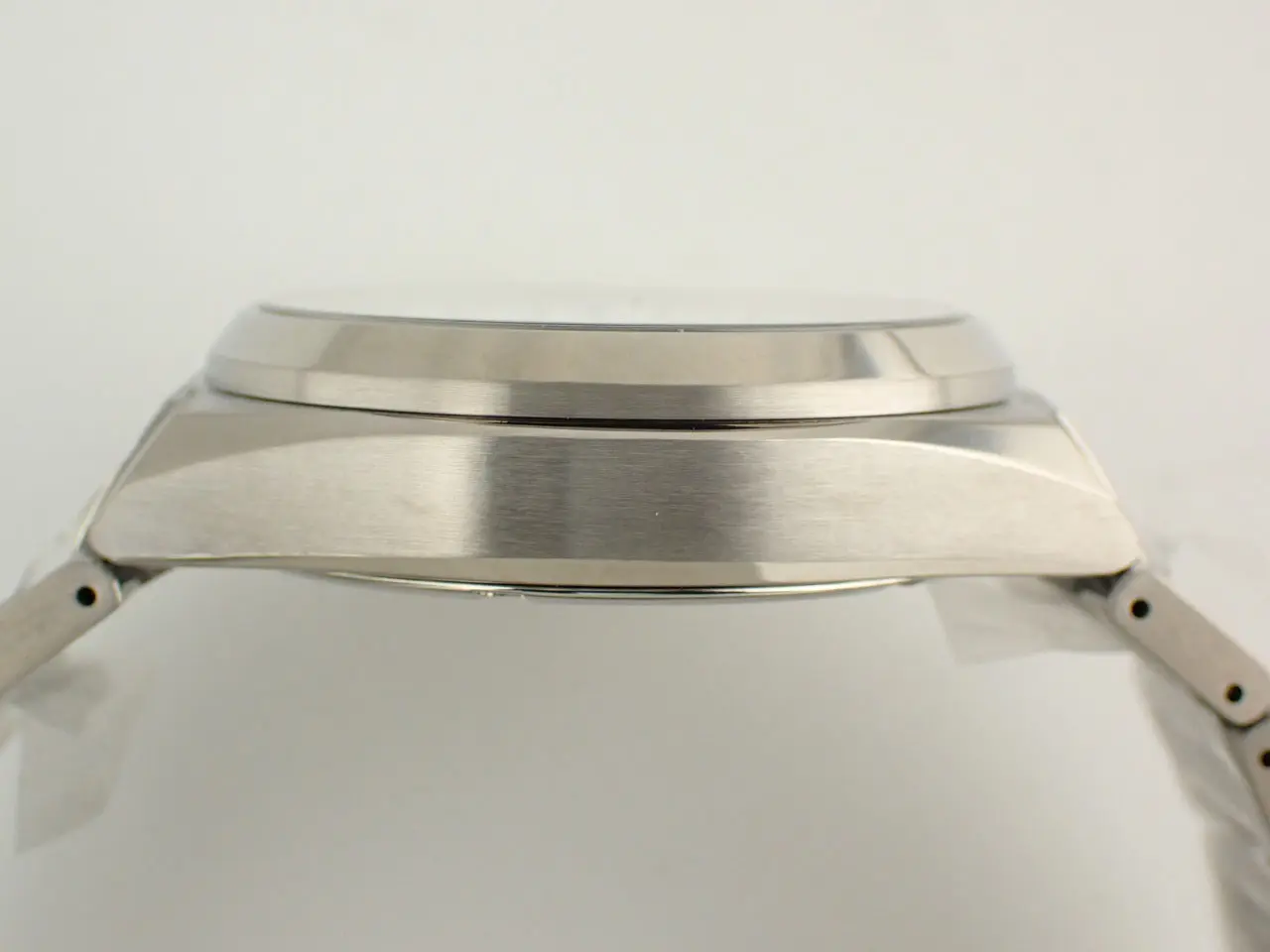 中古だが非常に綺麗な状態。時計本体やブレスのキズ等は光の角度により所々散見できる程度で、展示品・もしくは日常使用10回未満のような使用感がある状態。