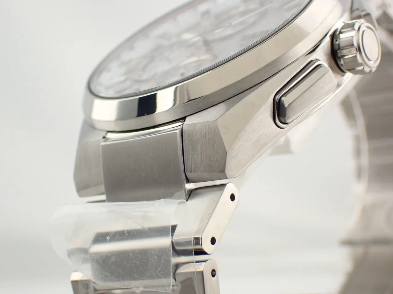 こちらは、ブランド初の1/20秒クロノグラフを搭載した「ネクスター」。ダイヤルはシルバーカラーのヘアライン仕上げでシャープな印象。ケースデザインはエッジを残すことで硬質で洗練された顔立ちを目指しました。クロノグラフの華やかさにコンテンポラリーなエッセンスが加わった、正に次世代にふさわしい一本です。